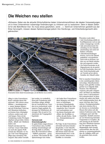 «Schwere» Zeiten wie die aktuelle Wirtschaftskrise bieten Unternehmensführern die idealen Voraussetzungen, um in ihren Unternehmen notwendige Veränderungen zu initiieren und zu realisieren. Denn in diesen Zeiten ist für alle Betroffenen klar: Es muss etwas geschehen, sonst ...».